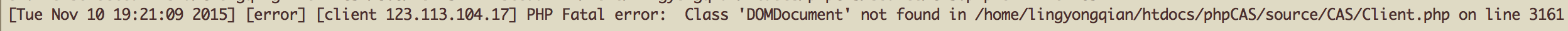 编辑config.php,配置$cas_host、$cas_context和$cas_port为刚刚搭建好的CAS-server的相关值,保存退出重新访问,又报500错误,apache的error_log报错
