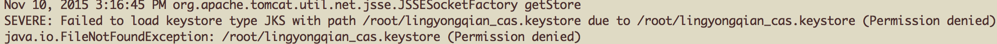 原来是权限问题,把keysore拷贝到/home/下面一个专门的文件夹,修改文件夹用户组权限为:tomcat.tomcat,同时修改server.xml中对应的配置,参考